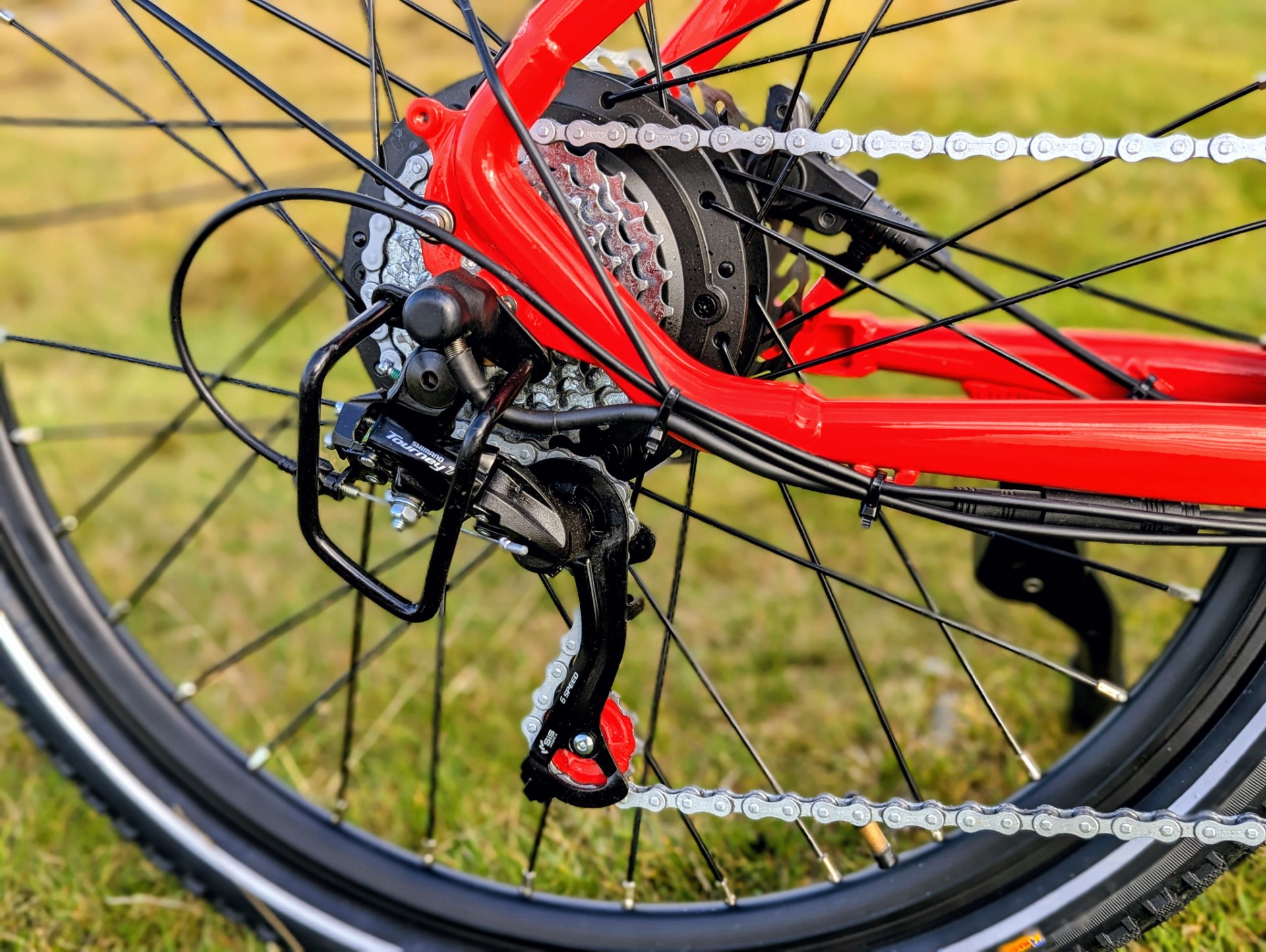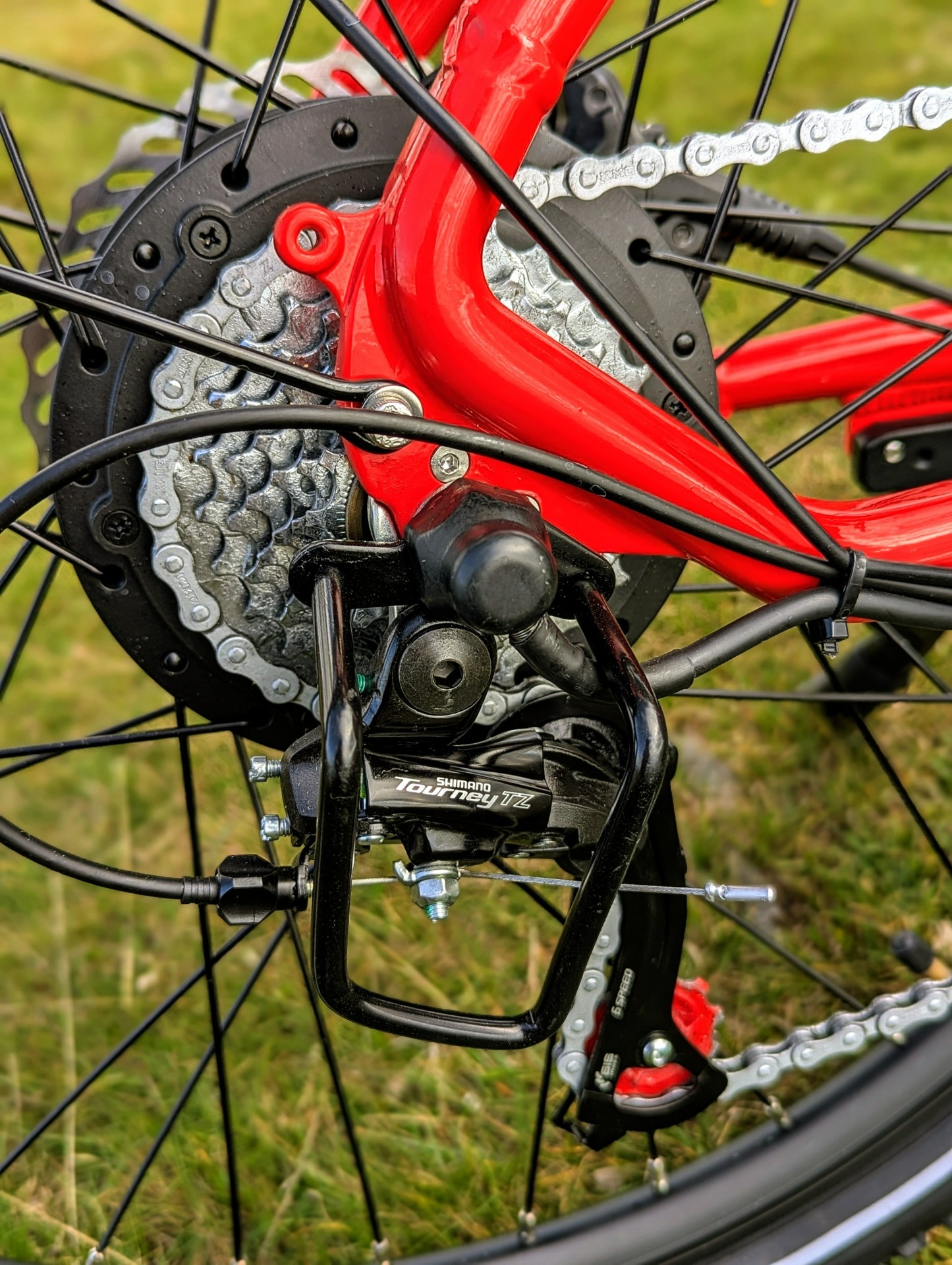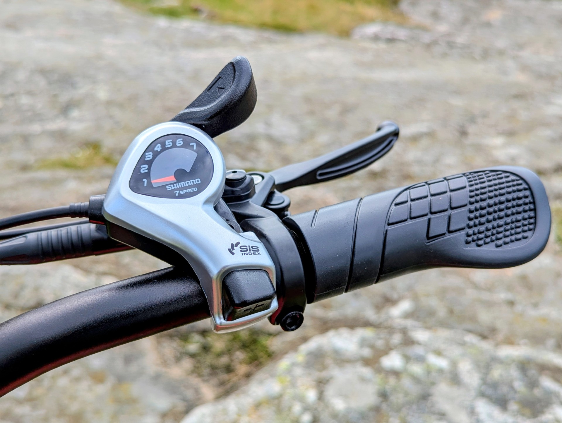 – Sju externa Shimano Tourney TZ (SIS) växlar med frihjul.