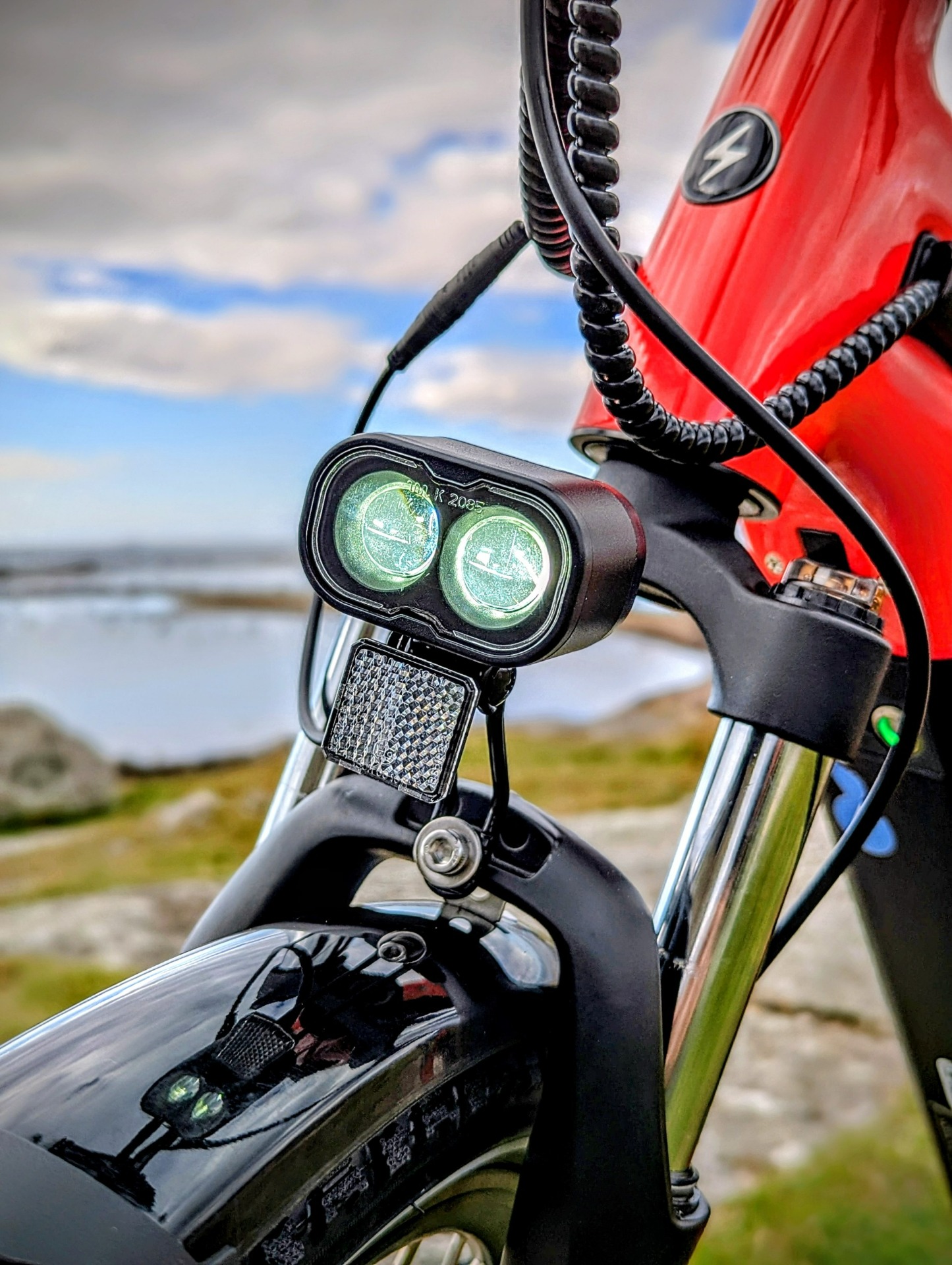 : LCD skräm med tre hastighetslägen och funktioner. Stark LED-lampa fram och